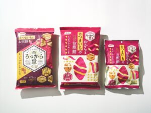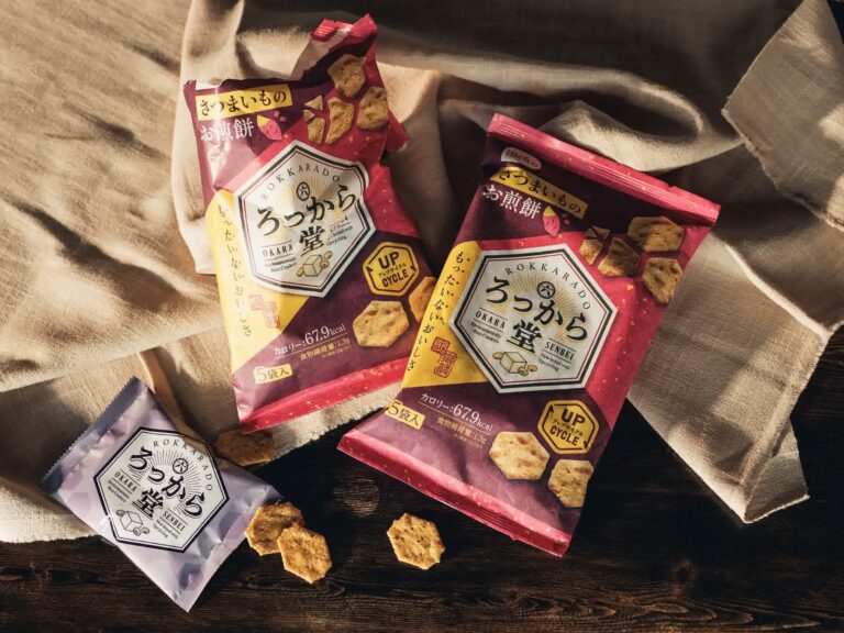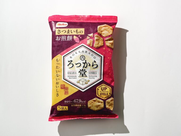2023 年にアップサイクル製品として発売した、おからとさつまいものお煎餅。